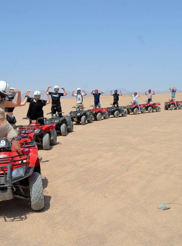 Get ready for an adrenaline-packed adventure! Zoom across golden desert sands on your quad bike, surrounded by stunning mountain scenery. Along the way, you’ll stop at a Bedouin village where you can experience their warm hospitality and discover the charm of traditional desert life.