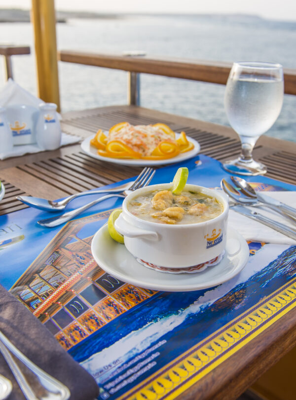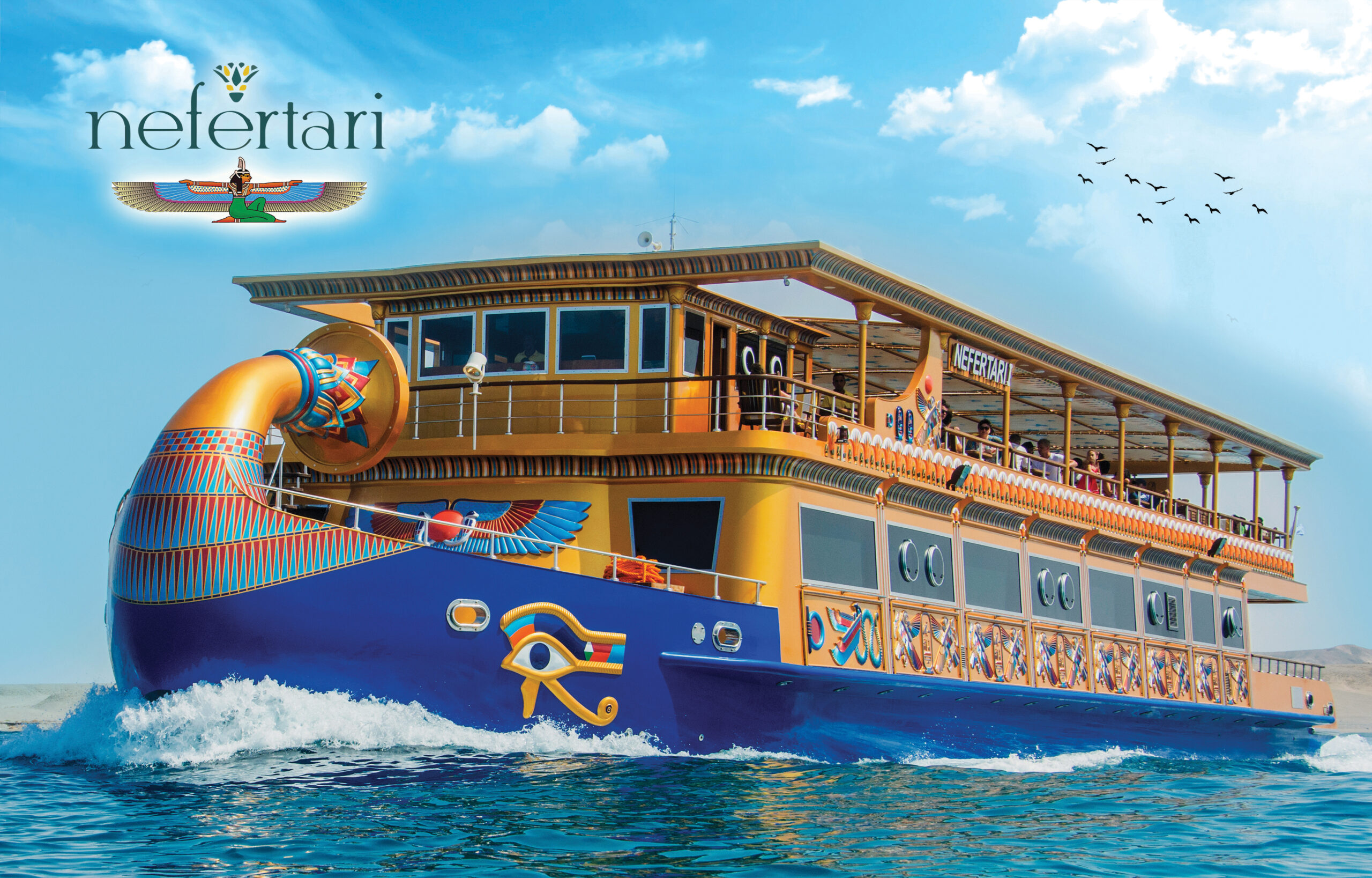 Discover the underwater world of Makadi Bay. Enjoy a 3-course lunch or dinner on a spectacular floating replica of Queen Nefertari’s tomb with an underwater viewing platform.